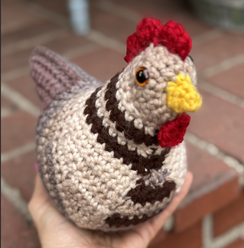 Most crafters use Aran weight for toys and projects such as this fabulous “emotional support” chicken.